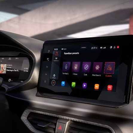 La tecnologia di bordo è pensata per accompagnarti, non per distrarti. Il sistema di infotainment è centrale, chiaro e facile da usare, integrato in modo naturale nel design della plancia. La connettività con lo smartphone rende ogni spostamento più semplice, mantenendo sempre il controllo a portata di mano.