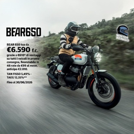 La Bear 650 è una roadster dal carattere deciso, che unisce stile moderno e piacere di guida su strada. Potenza equilibrata e personalità che non passa inosservata.