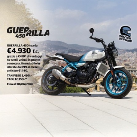 Il ritorno della vera roadster.La Guerrilla 450 è la compagna perfetta per chi cerca potenza e agilità in un design grintoso. Ideale per affrontare ogni strada con stile e decisione.