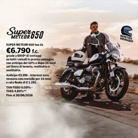 Comoda, maneggevole e perfetta per le lunghe distanze.La Meteor 350 è pensata per chi vuole vivere la strada con stile e serenità.